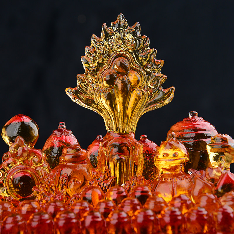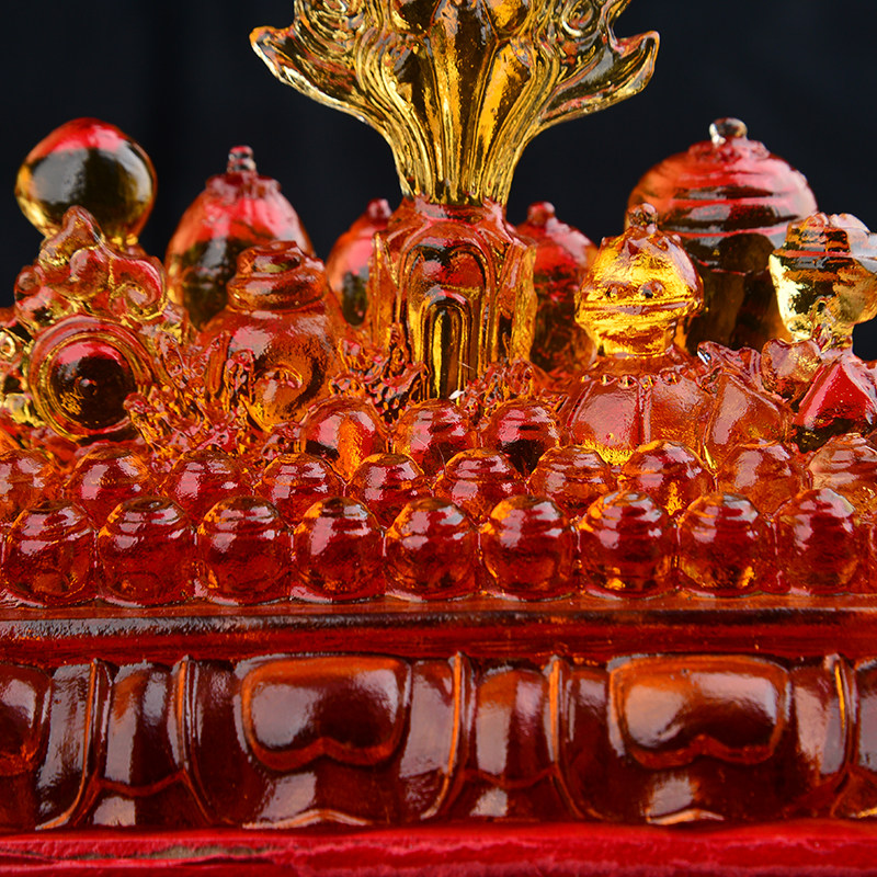 Ancient glass hundred thrones esoteric ritual utensils ornaments Mani treasure hundred treasures collection for Buddha supplies yellow large