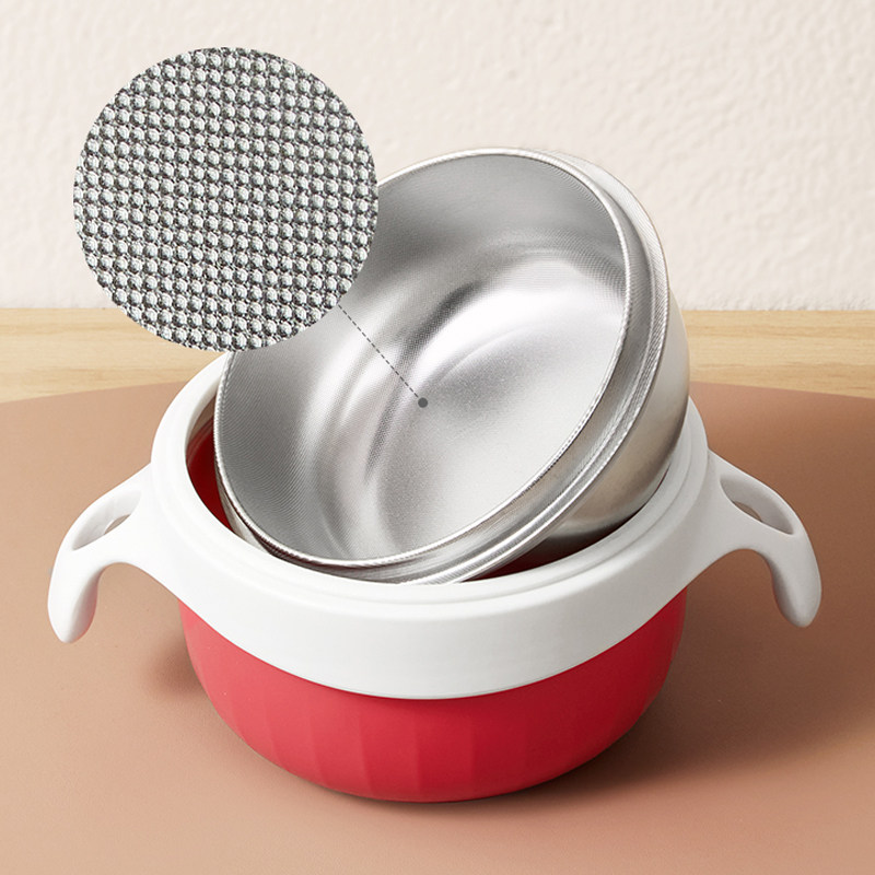 Bernsch baby water injection bowl insulated bowl spoon suit children stainless steel insulated bowl baby anti-fall and burn-proof cutlery