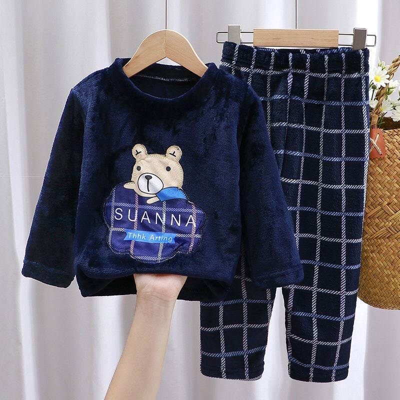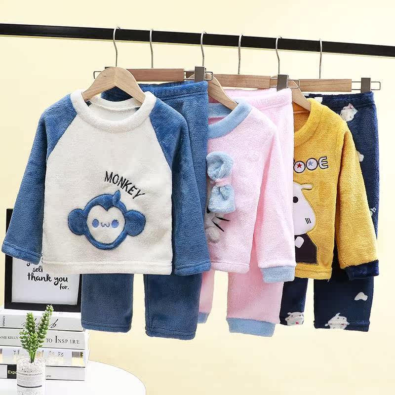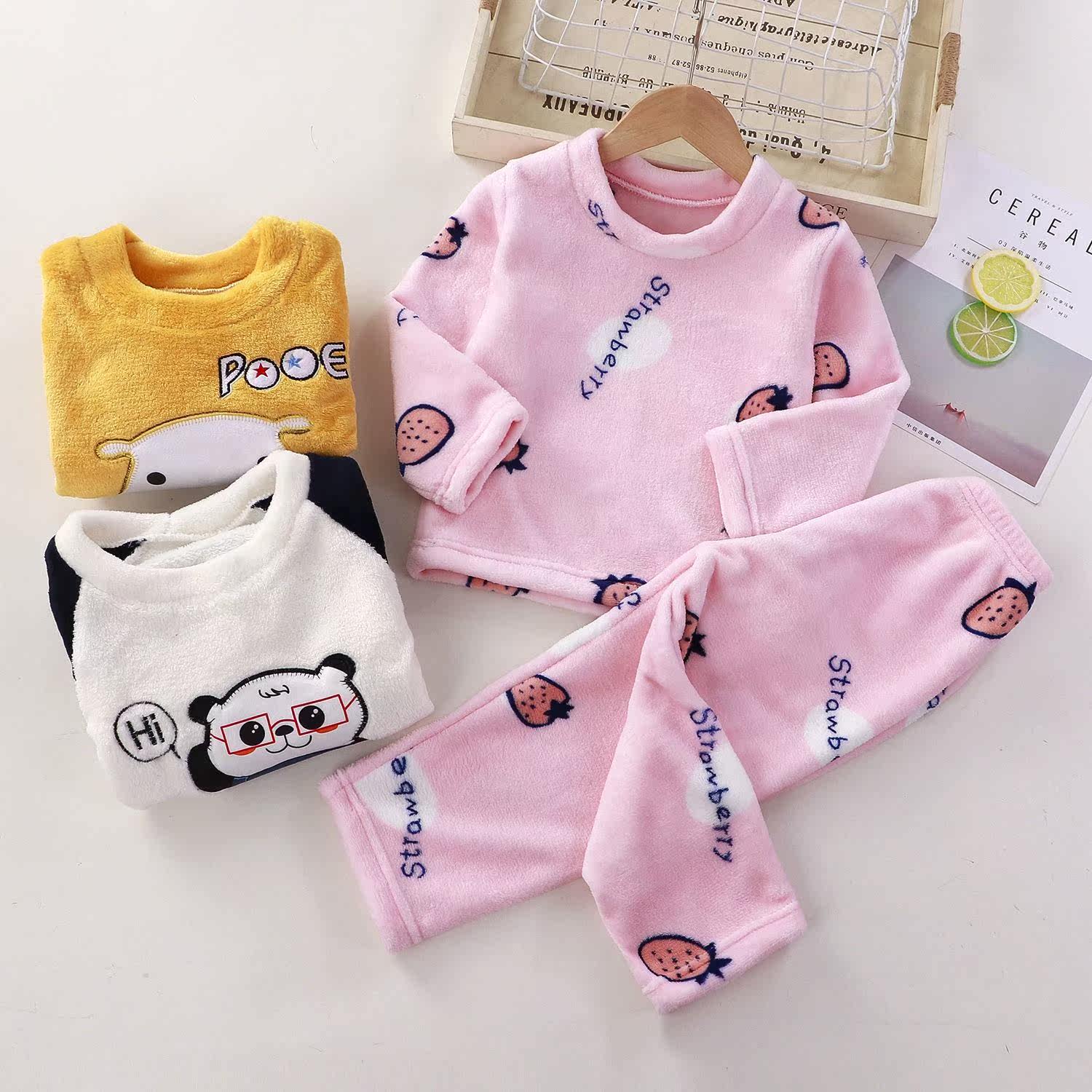 Child Flannel Sleepwear Suit Autumn Winter Baby Boy Girl's Home Conserved Gushed Thickened Winter Dress Coral Suede