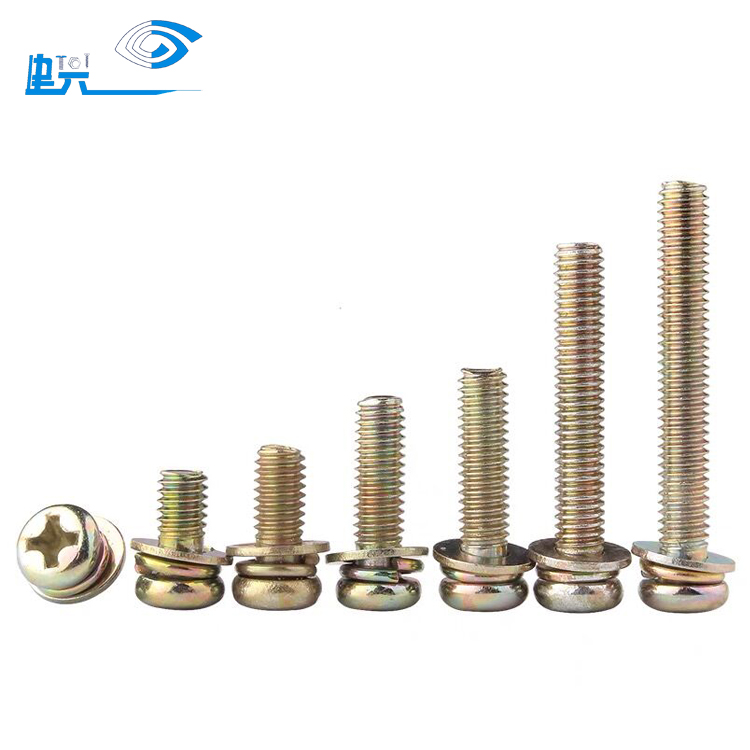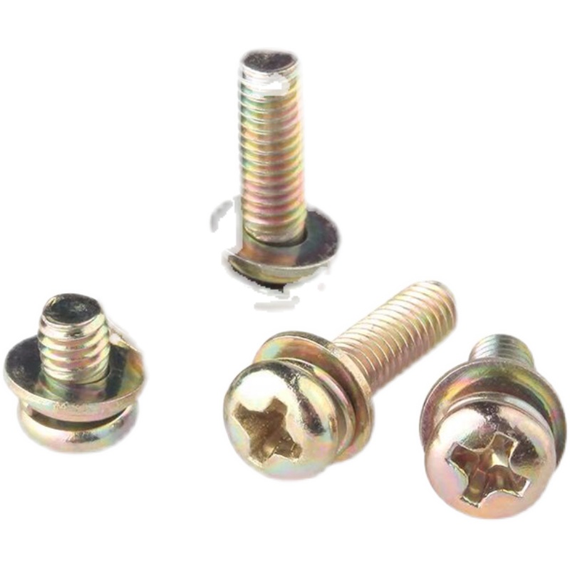 M4 * 8 galvanized cross round head three combined screw disc head with flat cushion elastic cushion combined bolt with cushion screw
