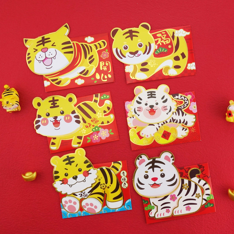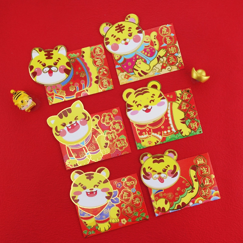 Tiger Year New Cartoon Cute Three-dimensional New Year Red Bag Creative children 2022 li is a cover for children's Chinese New Year press age package