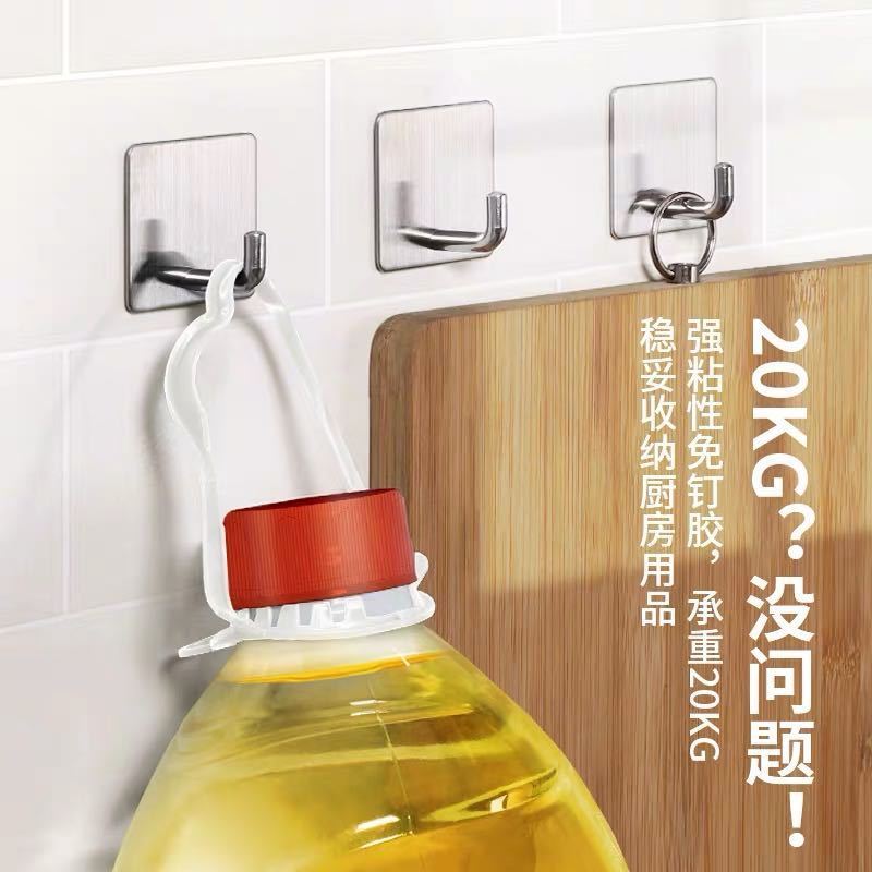 Punch-free stainless steel sticky hook strong seamless hook bathroom towel hook clothes hook kitchen load-bearing wall hanging metal hook