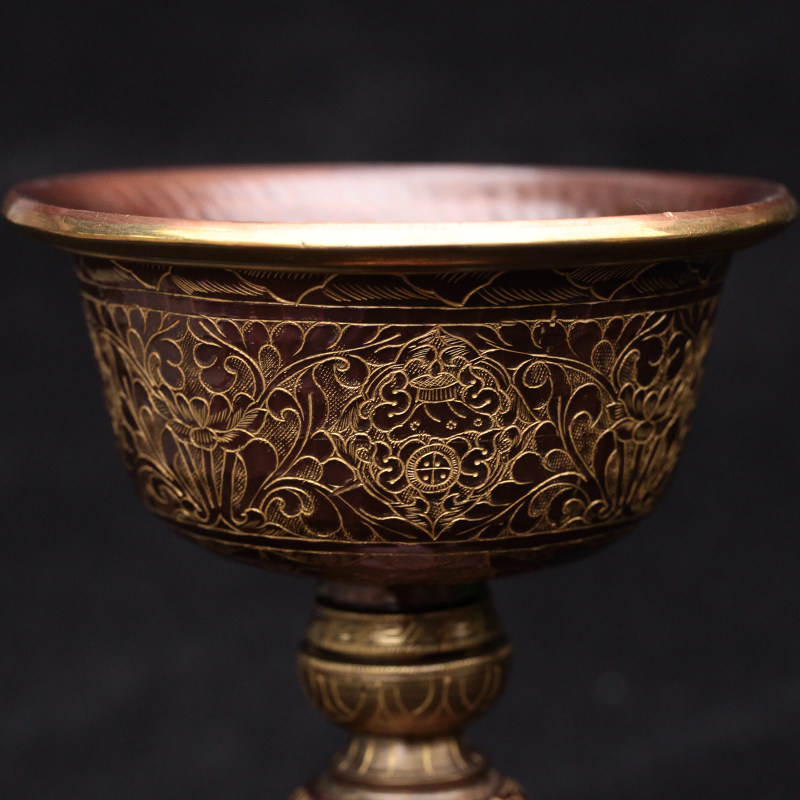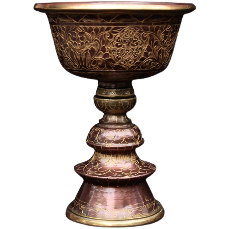 Ghee lamp lamp holder Nepal imported copper hand-carved and painted gold for Buddha lamp decoration home candle holder