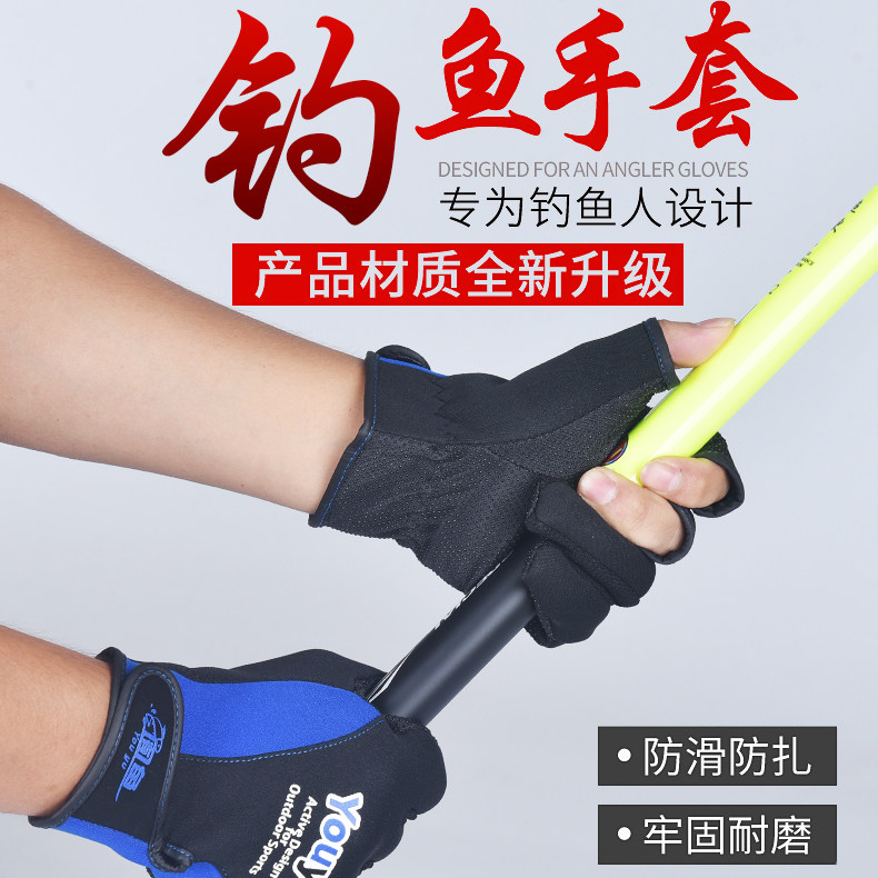 Fishing gloves men's autumn rock fishing special anti-stab waterproof anti-cut anti-skid flying knock Lua equipment
