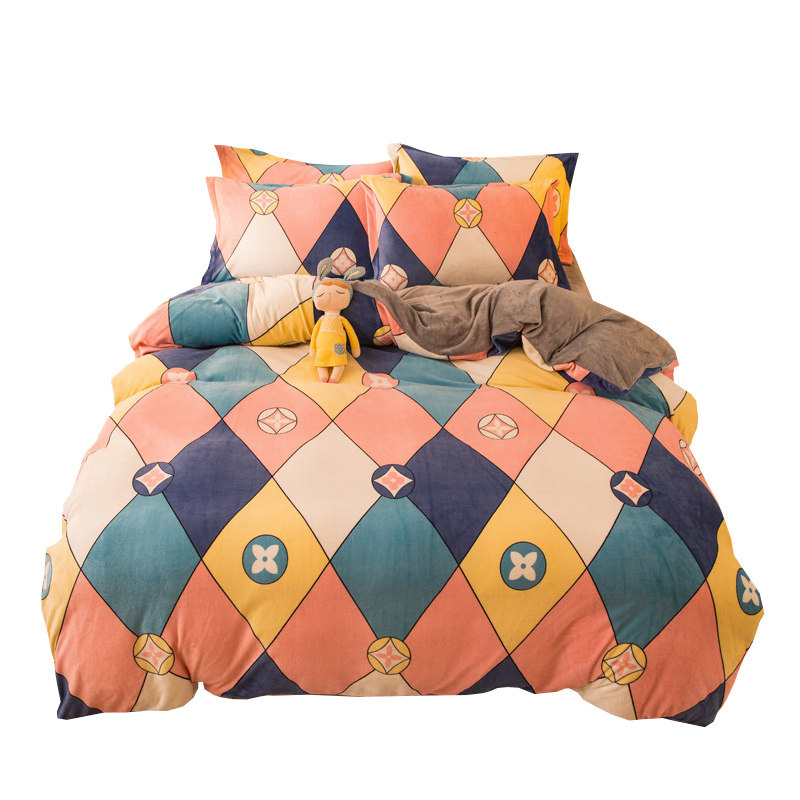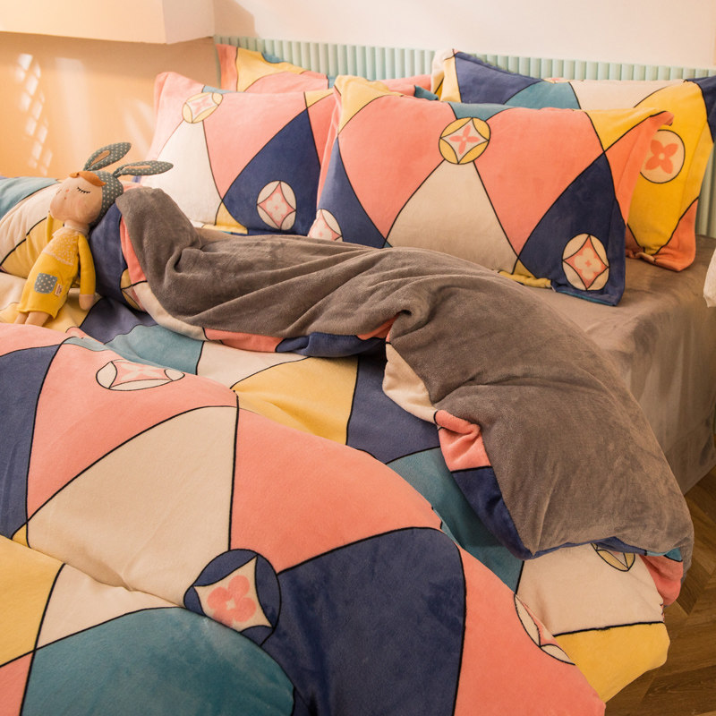 Thickened milk coral velvet four-piece set double-sided flannel quilt cover winter Falai plus velvet bed sheet bed three-piece set