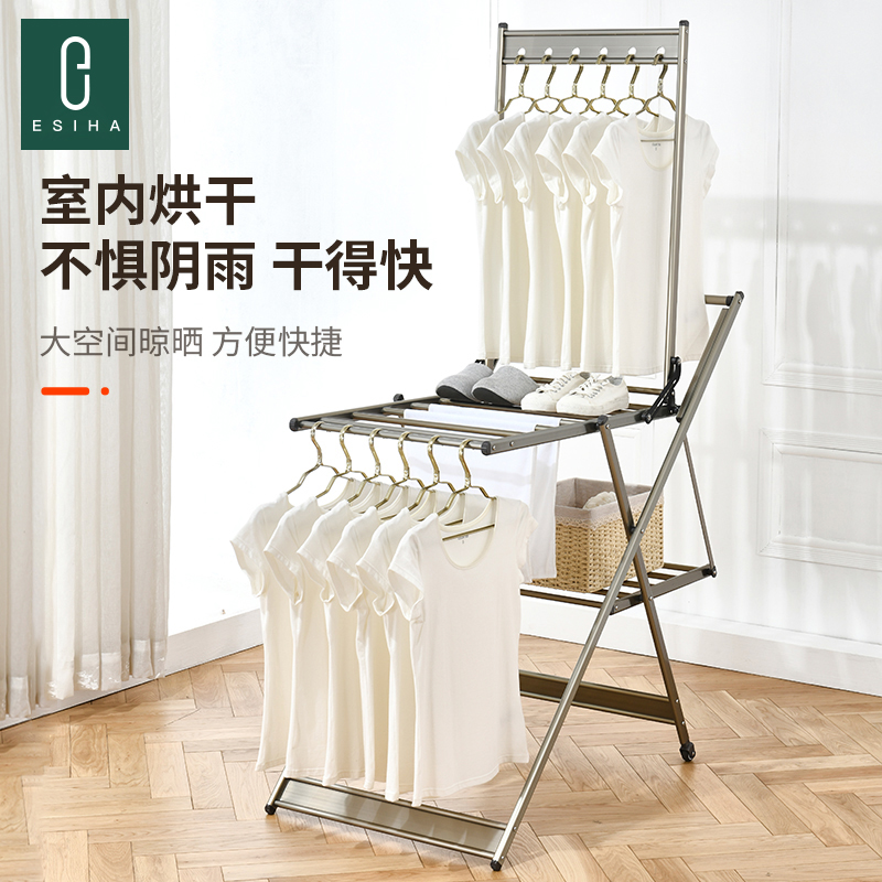 Baby folding clothes hanger landing baby multi-functional clothes hanger home balcony indoor drying quilt artifact
