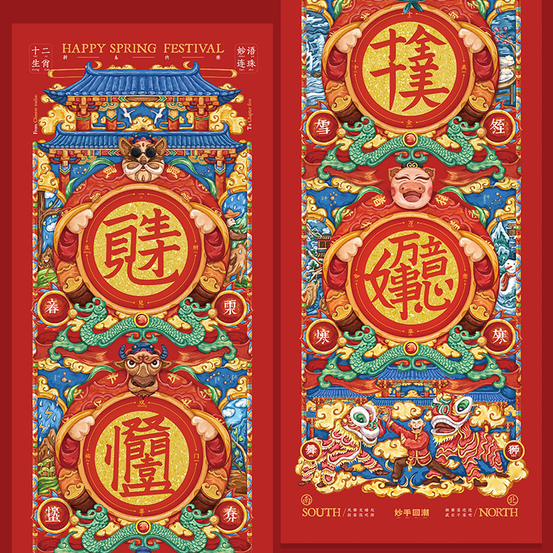 Inexplicate back to the tide 2022 for the Spring Festival Home New Year's Creative Tiger Annual Gate Creative Spring Couplets Fu Character Decoration Tide