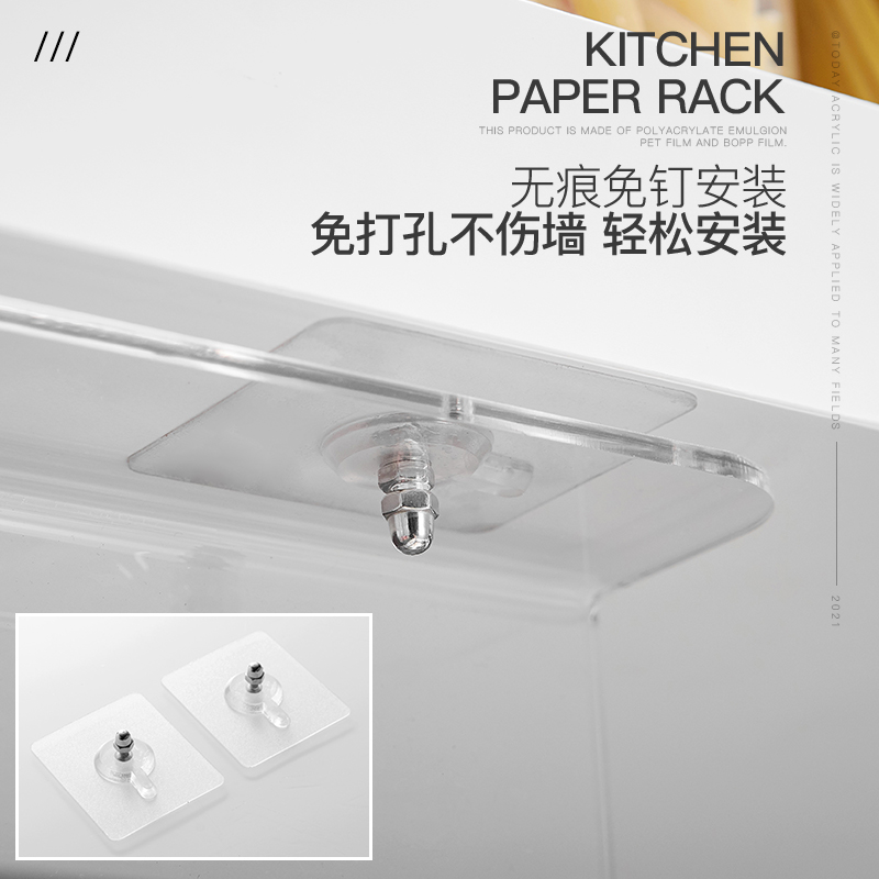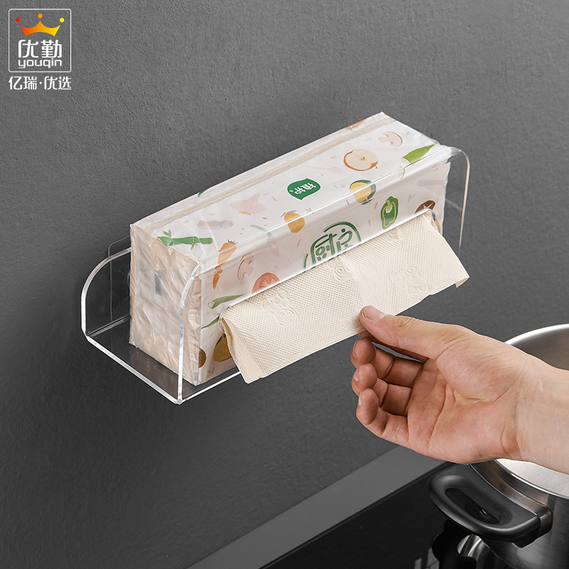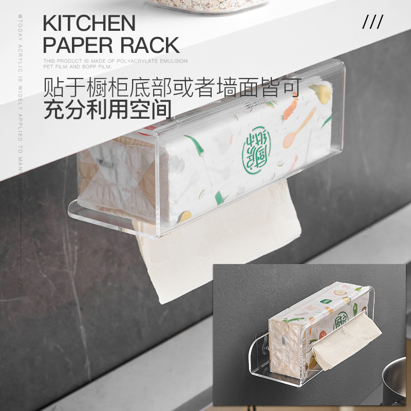 Free Punch Kitchen Extractable Toilet Paper Rack Wall-mounted Household Transparent Paper Towel Box Integral Cupboard Upside Down Type of Extraction Toilet Paper Towel Rack