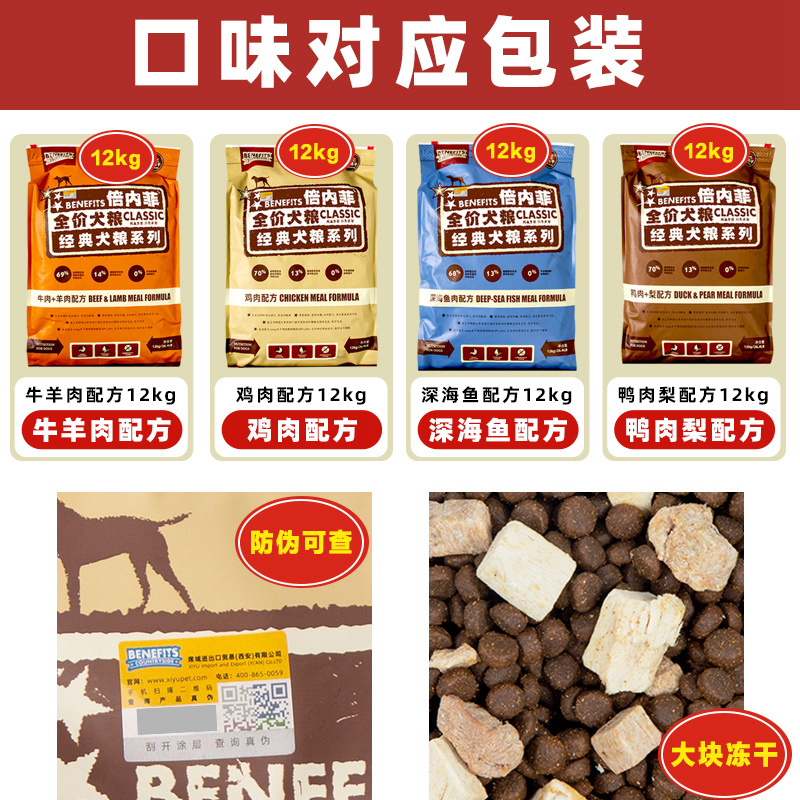 Benefits Benefit Gold Standard 12kg dog food classic grain-free freeze-dried beef and mutton chicken deep-sea fish duck