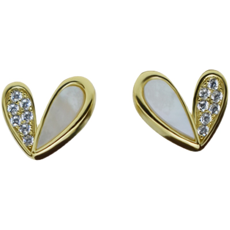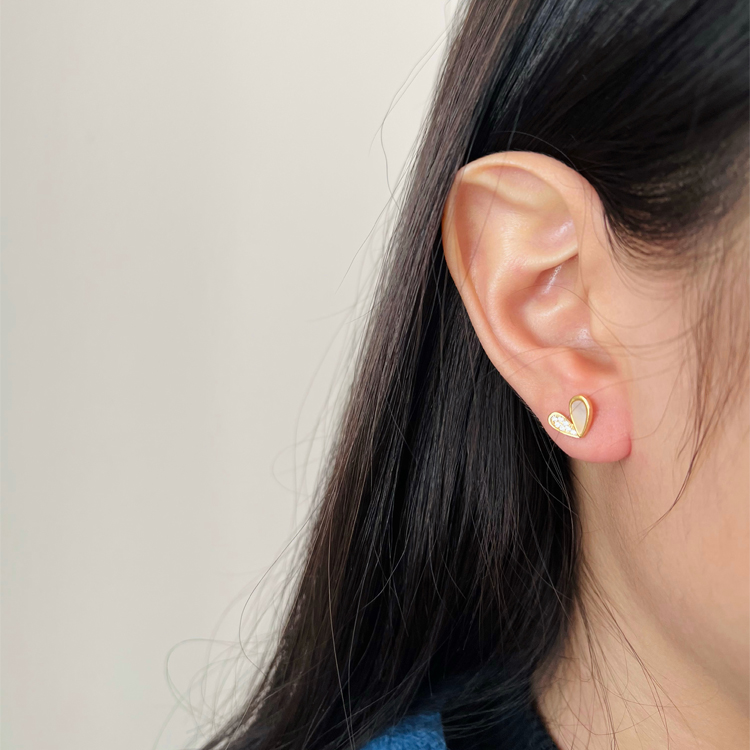 BM jewelry S925 silver love ear needle irregular heart-shaped sterling silver mother-of-pearl earrings female gift Japanese earrings