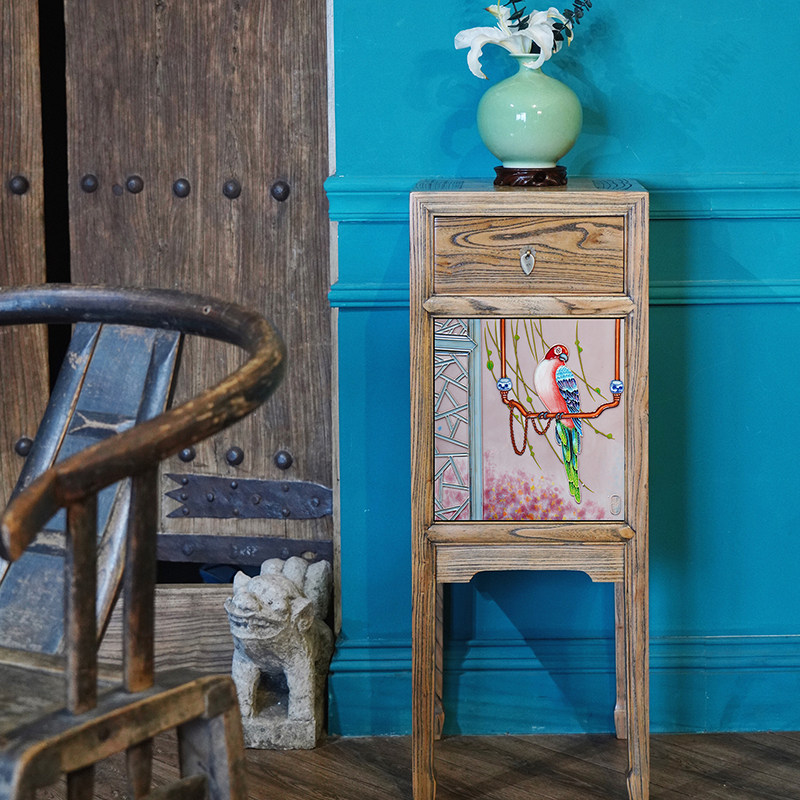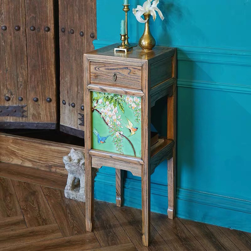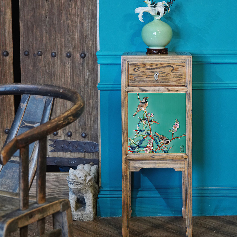 Canon's original full solid wood elm classical living-room furnishing wood-craft balcony flower shelf-floor shelve