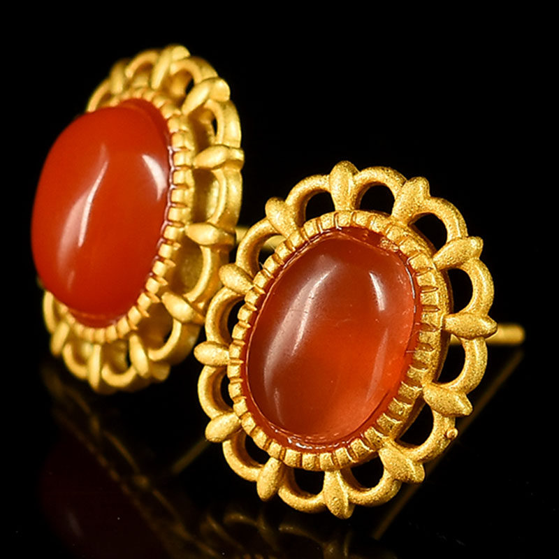 1 94 gr delicate S925 inlaid with water Runsouth red Manau round pearl earrings earrings