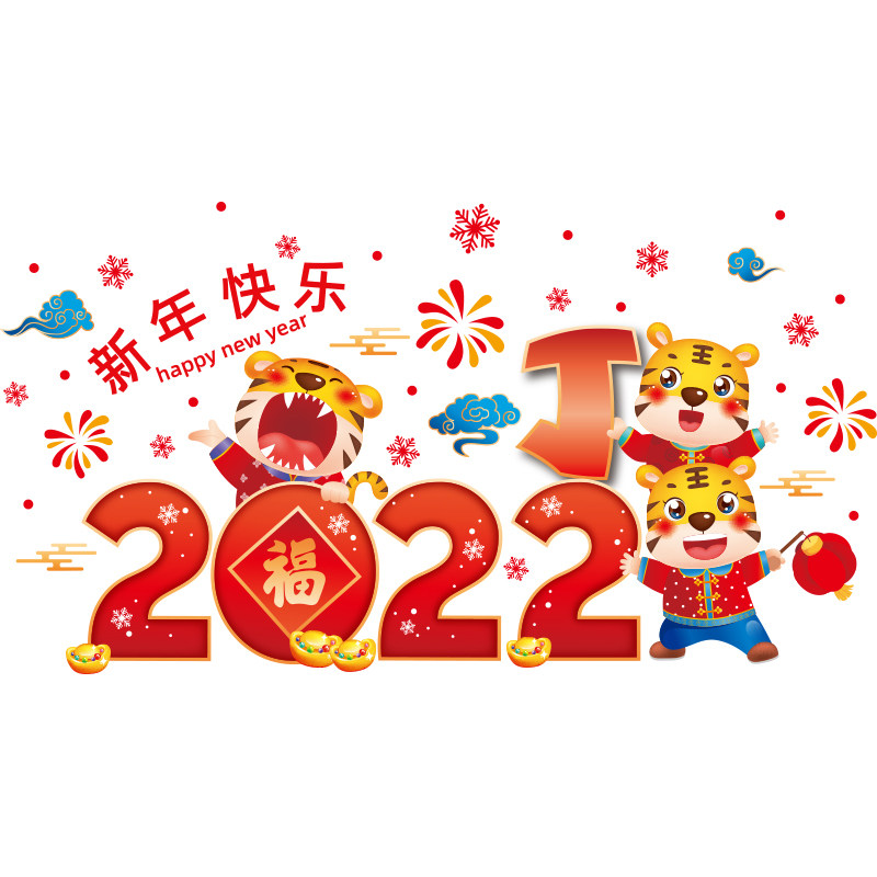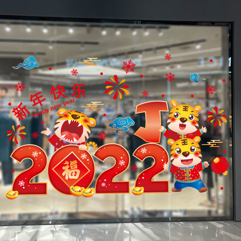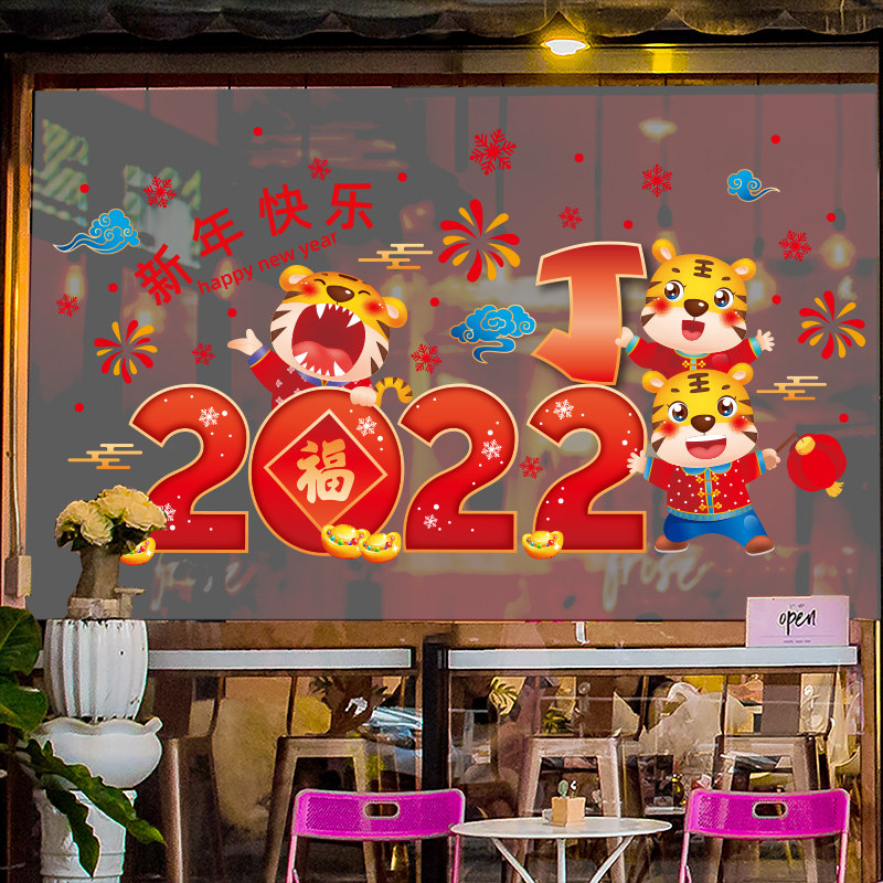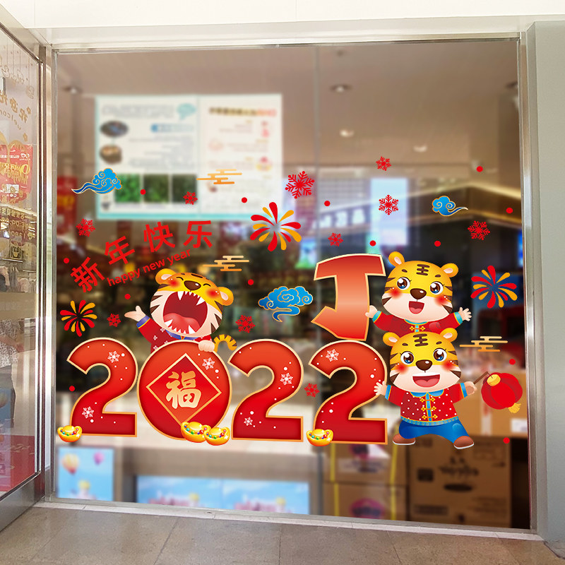 2022 Tiger years New Year decorations glass stickers storefront windows to dress stores New Year's Day to arrange festive atmosphere