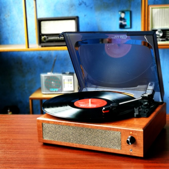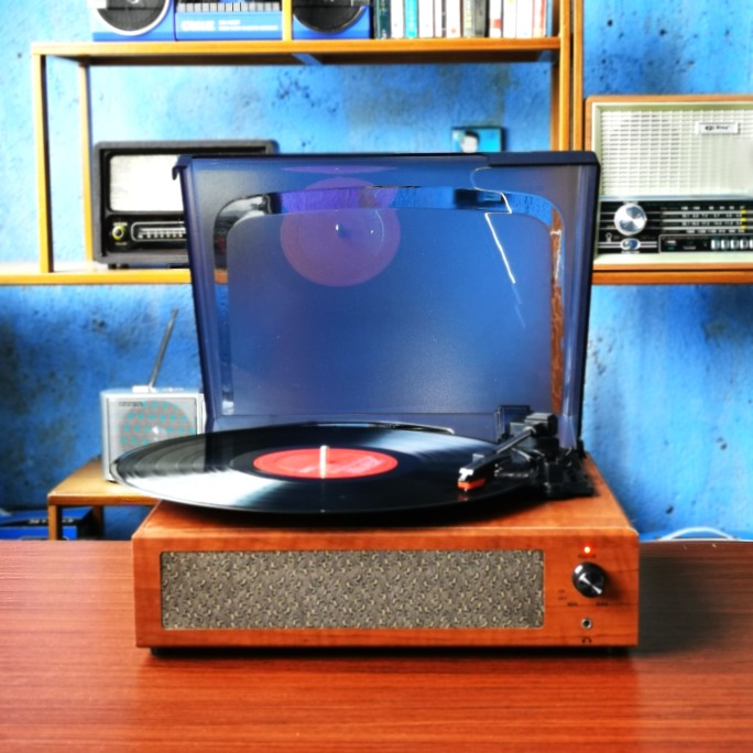 Retro nostalgic grammaine machine desktop electric record machine New Chinese black adhesive record machine Bluetooth with sound box