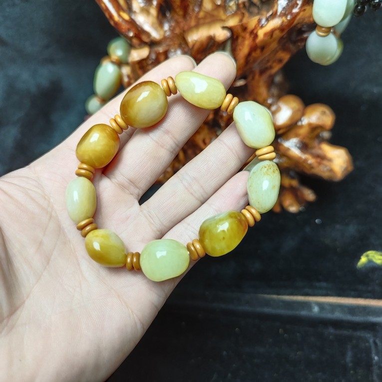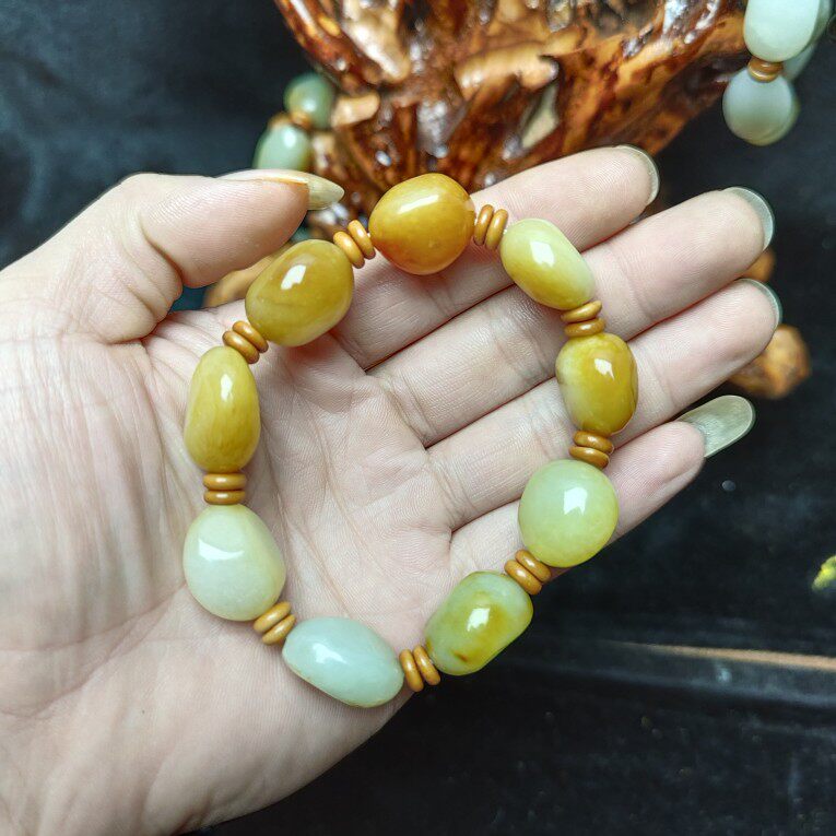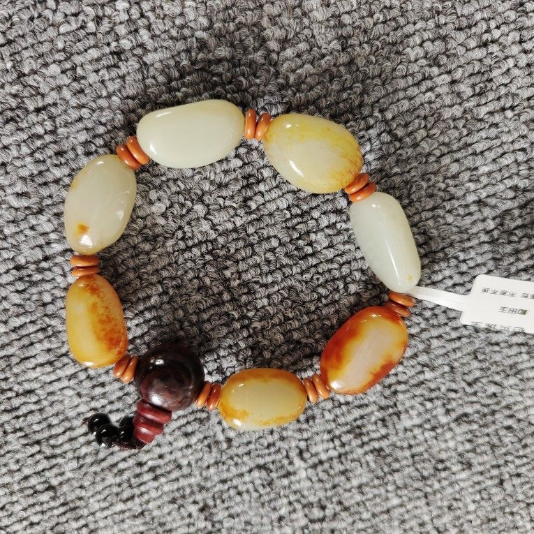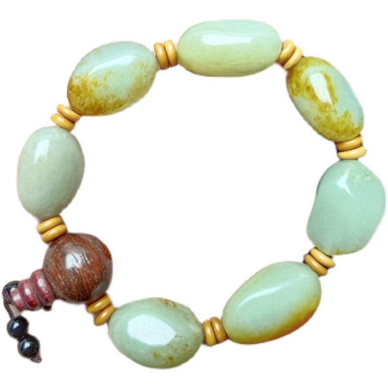 Xinjiang natural Hetian jade raw stone seed material raw skin raw seeds sprinkled with golden skin lake water green men's and women's hand string bracelet with certificate