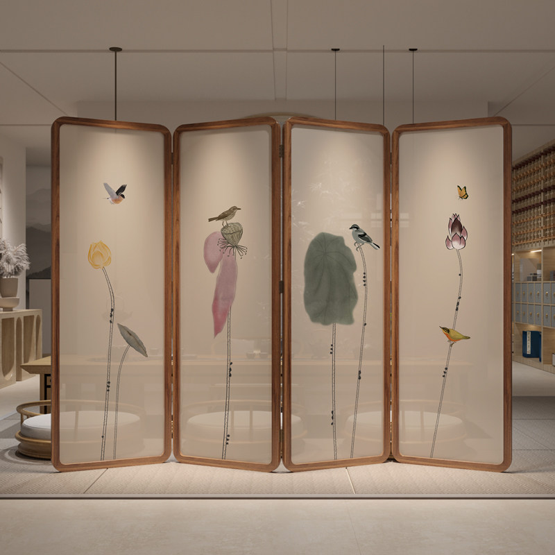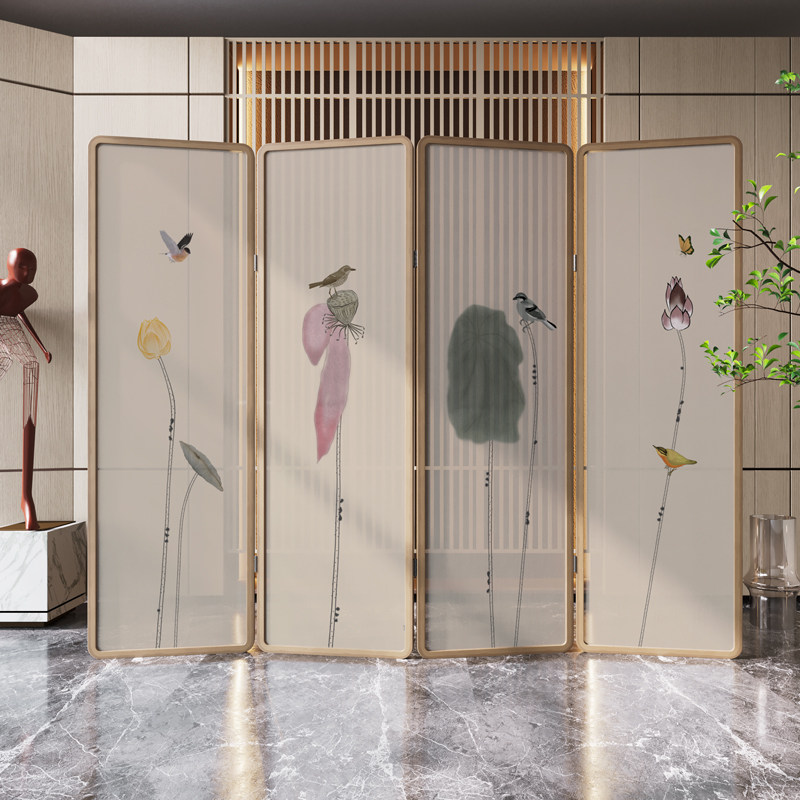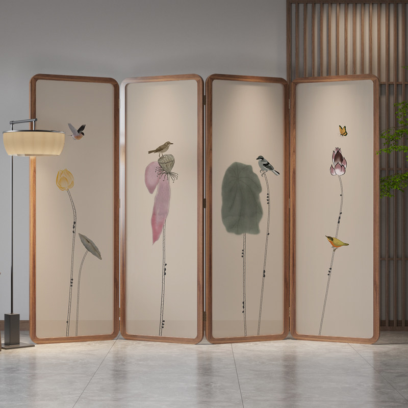 Chinese screen partition living room modern simple Zen Lotus mobile folding bedroom tearoom block screen