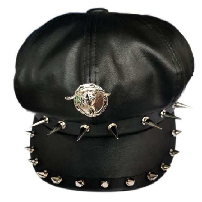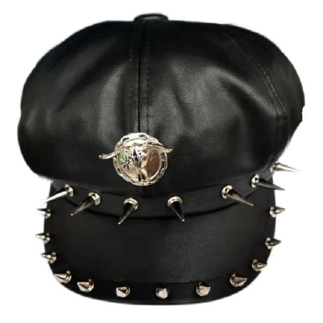 Young Yingren Fashion 100 Lap Leather Hat Punk Wind Rock Beret Leather Autumn Winter Hat Rivet Casual Short Hat along the hat