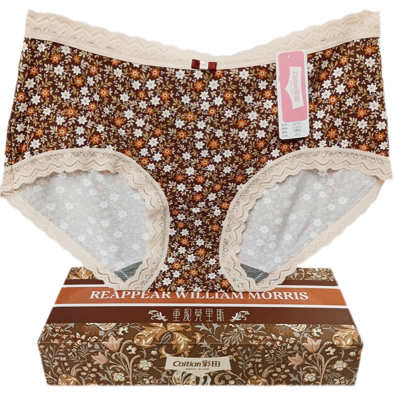 Color Field Briefs Female Midbody Waist Printed Lace Side 31797 Graphene Bacteriostatic Luxurious Ventilation Modale Cotton Wrap Hip