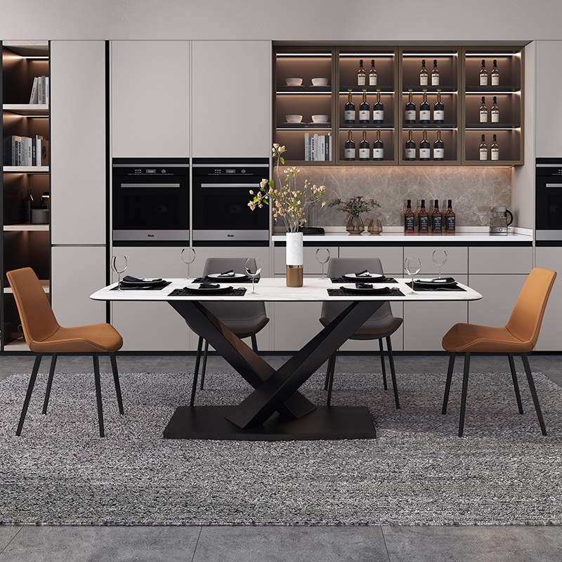 Italian light luxury rock slab dining table Nordic rectangular solid wood dining table and chair combination small apartment marble dining table - Taobao