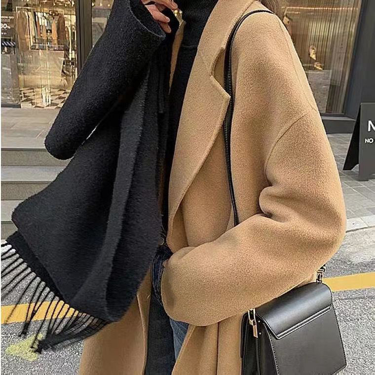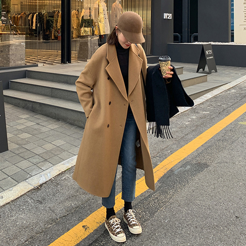 Camel woolen coat women's long version 2021 autumn and winter New Advanced sense temperament thickened small woolen coat