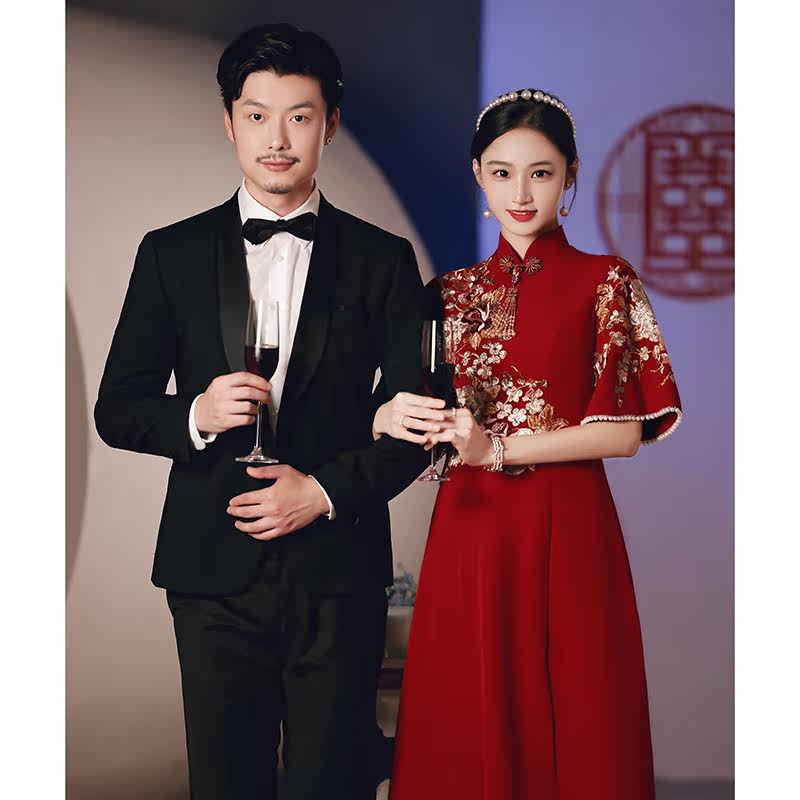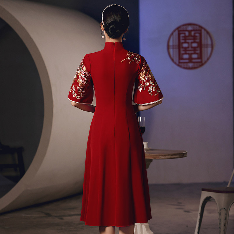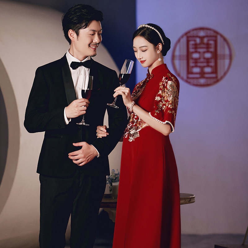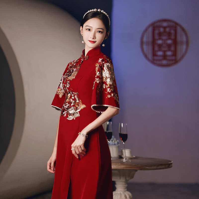 Pregnant woman toast the bride 2022 new qipao show and Chinese style wedding reception to the wedding gown to cover the belly