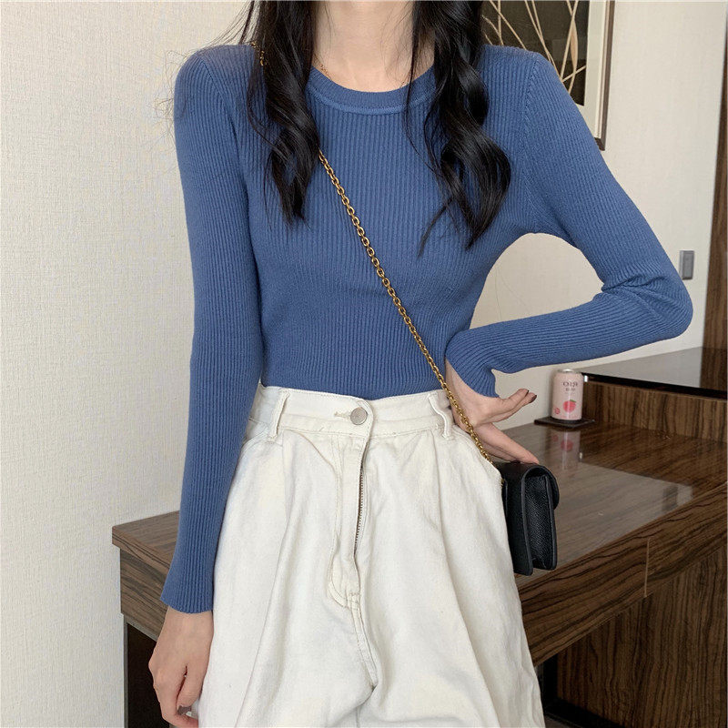 Large size Fat mm pure color round collar Long sleeves Knitted Cardiovert Autumn Winter New body Thunder jacket Bottom Jersey Female Tide-Taobao