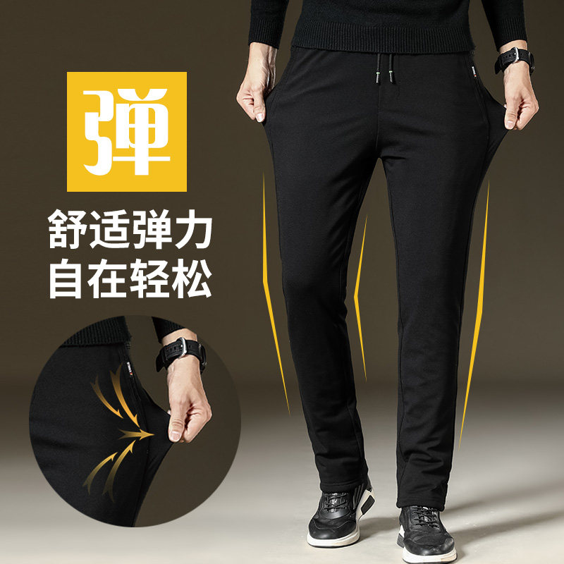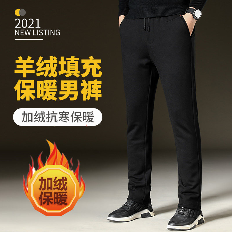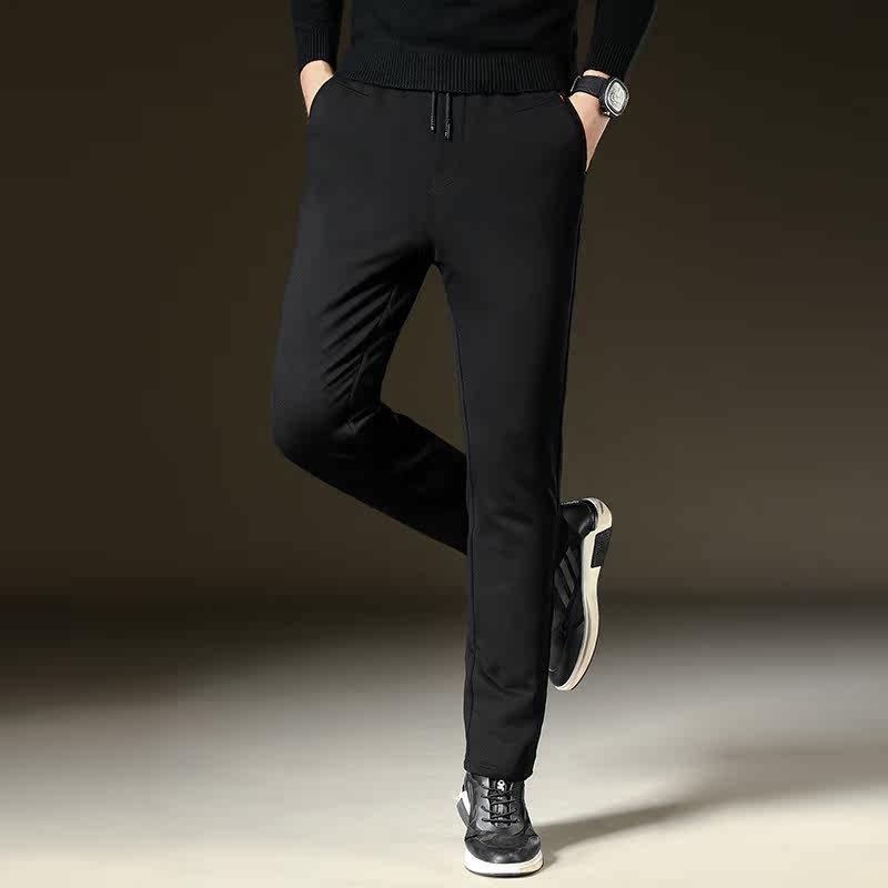 Men cashmere pants outside wearing high waist and autumn winter plus suede thickened warm pants men's middle aged sports elastic casual cotton pants
