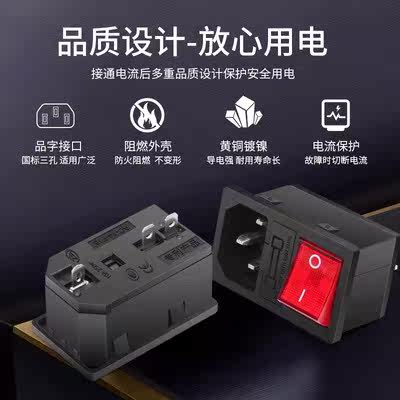 AC character C14 socket with large switch fuse seat red light ship type switch 2 0 card three in one socket
