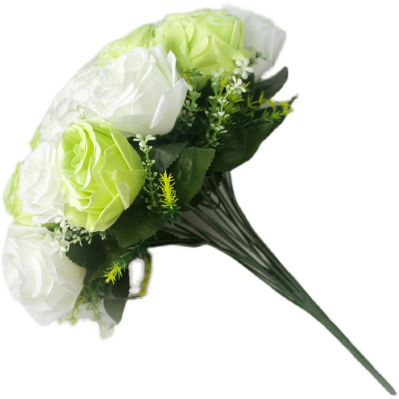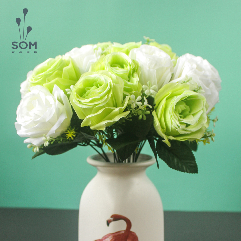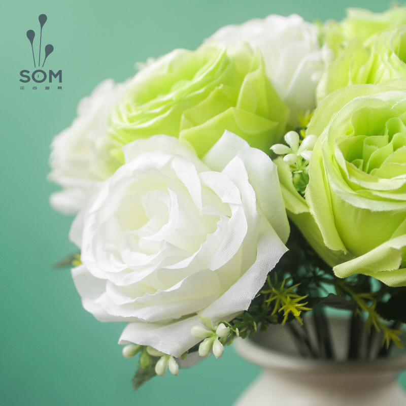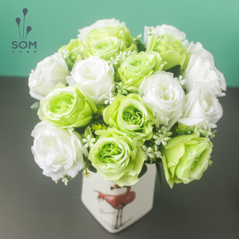 Simulation rose 18 white and green combination fake flower decoration bouquet wedding home living room flower decoration flower art