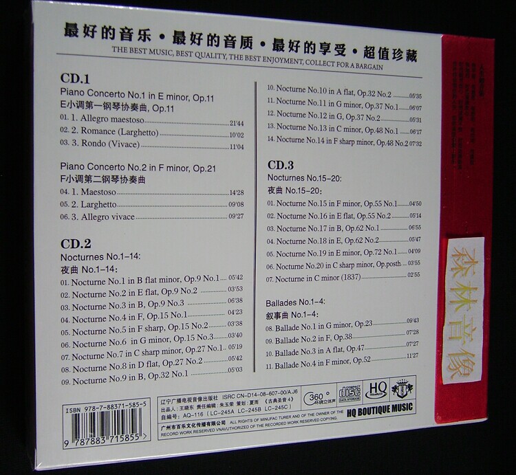 Authentic car with disc disc record Chopin classical piano concerto of the world famous nocturnal black rubber three CD