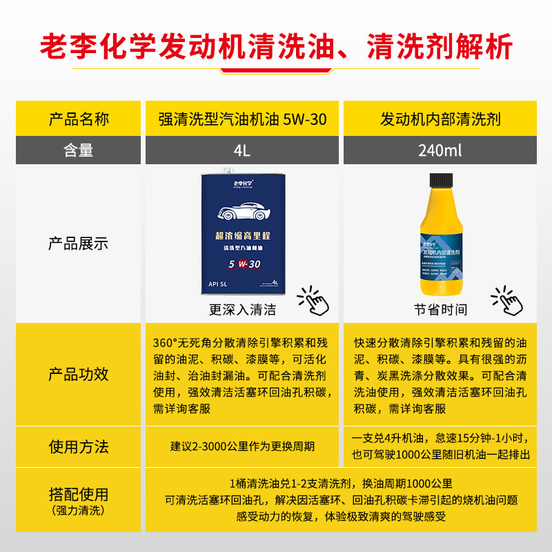 Old Li Chemical engine washing oil engine Internal cleaning oil mud accumulation carbon cleaning agent 5W-30 4L SL