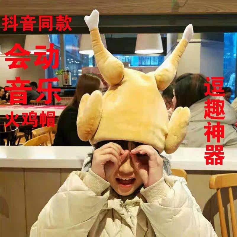 Chicken thigh hat vibrato with the same moving chicken thigh hat little dragon girl funny sand sculpture gift can sing and dance electric