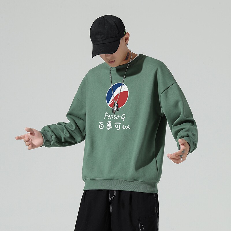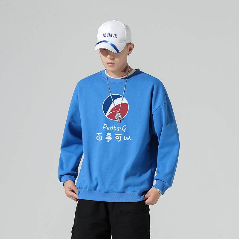 Round collar thick cotton T man 2020 fall new Korean version trendy printed long sleeve blouse loose casual no hat