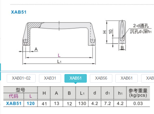 With XAB51-L120 square handle external type F type small resin external handle handle