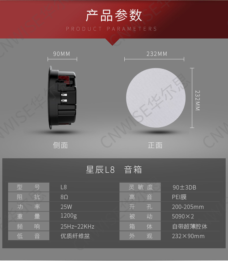 Hualth Star Chen Series L8 Suction Top Speaker Ceiling Speaker Ceiling Speaker Cavity Body Background Speaker Passive Speaker