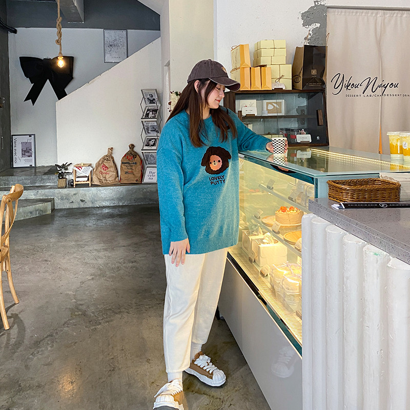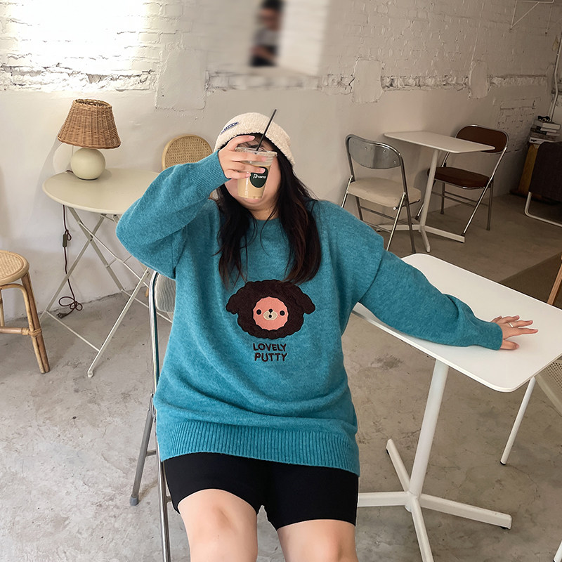 YUZI Caviar's Spring and Autumn New Large Size Round Neck Pullover Baby Bear Sweater Fat mm Loose and Thin Ladies Top