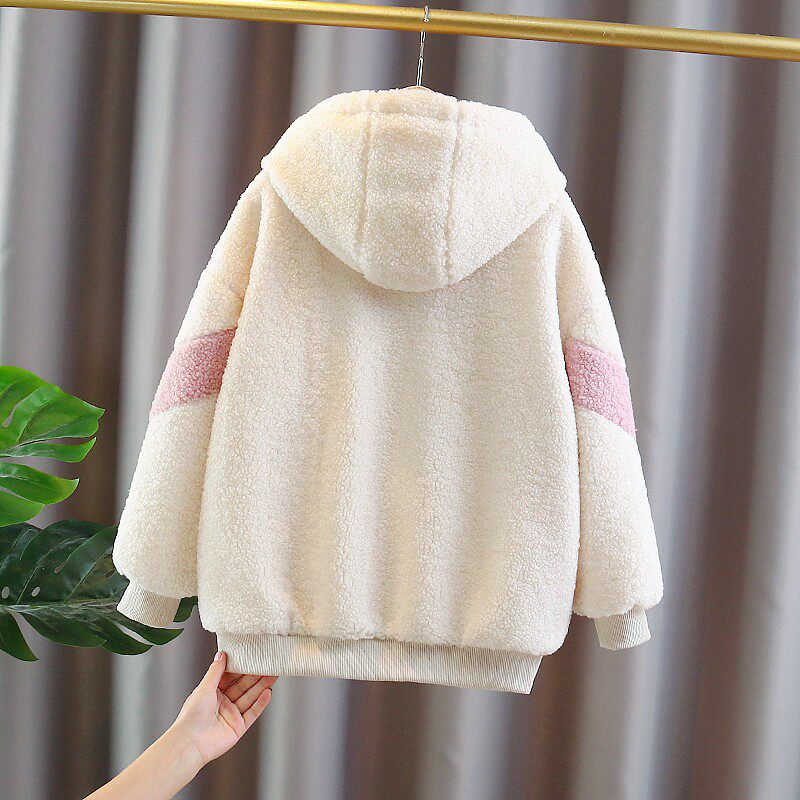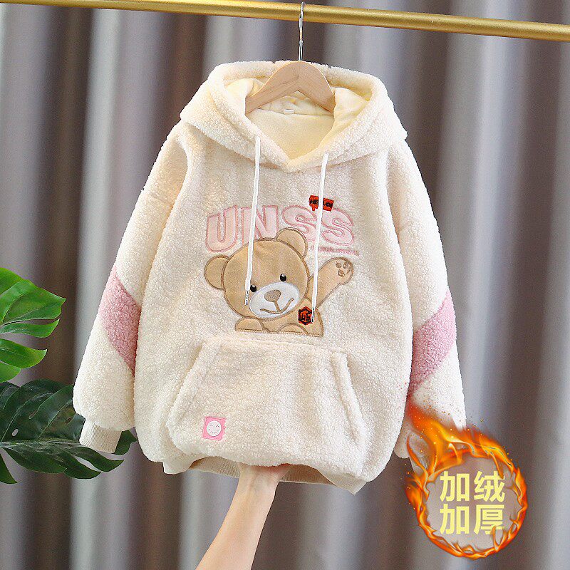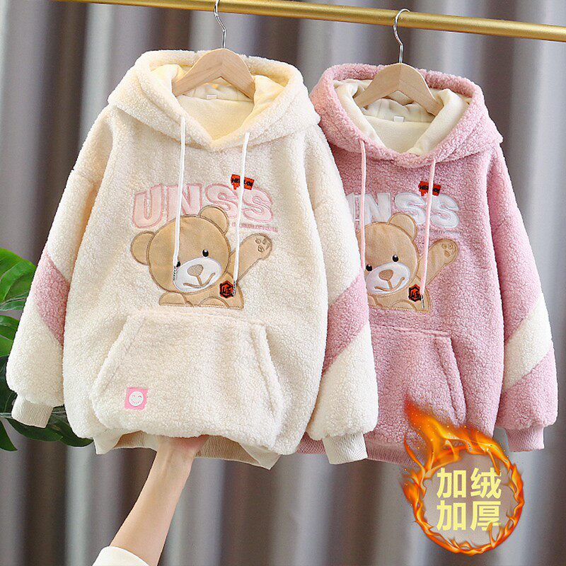 Girls' fleece sweater mid-length version 2022 new middle-aged children's sweater Western style loose autumn and winter thickened lamb velvet