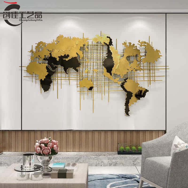 Light luxury wrought iron map living room sofa background wall handmade custom metal decoration creative wall soft hanging decoration