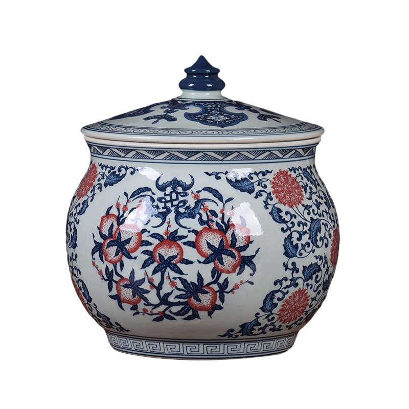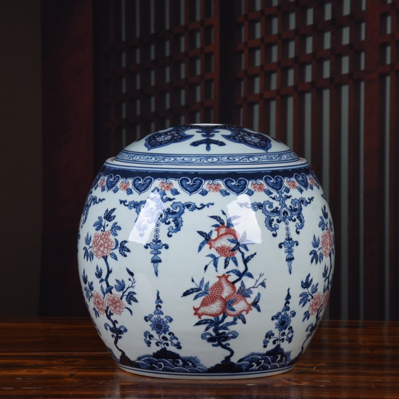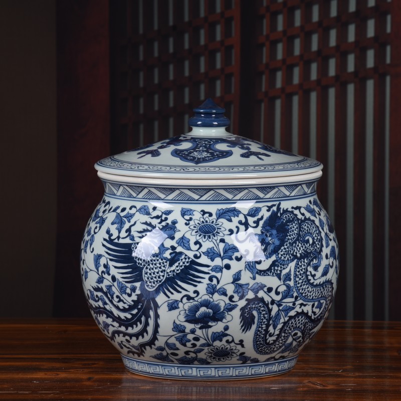 Jingdezhen hand-painted ceramic antique blue and white porcelain tea pot tea pot tea cake seven cake storage pot large ornaments