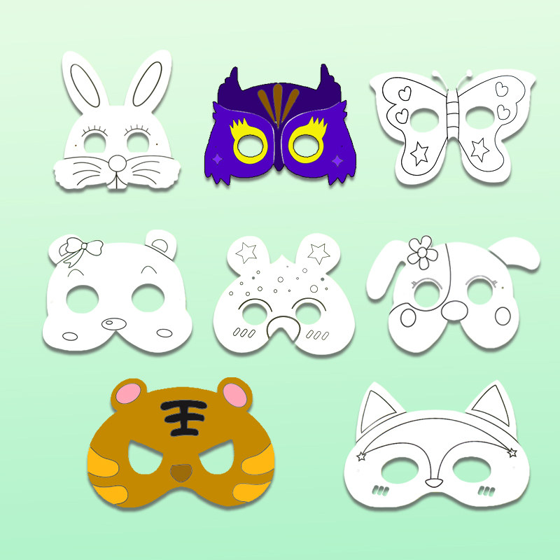 Children's painting blank graffiti mask kindergarten cartoon cardboard mask diy artisanal art material pack