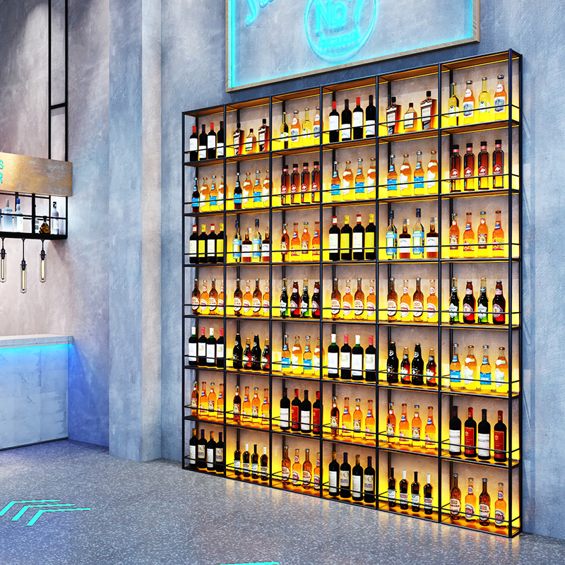 Bar Wine Rack Iron Art Beer Show Rack Red Wine Rack Dining Room Partition Leaning Against Wall Luminous Shelve Wine Cabinet Customised