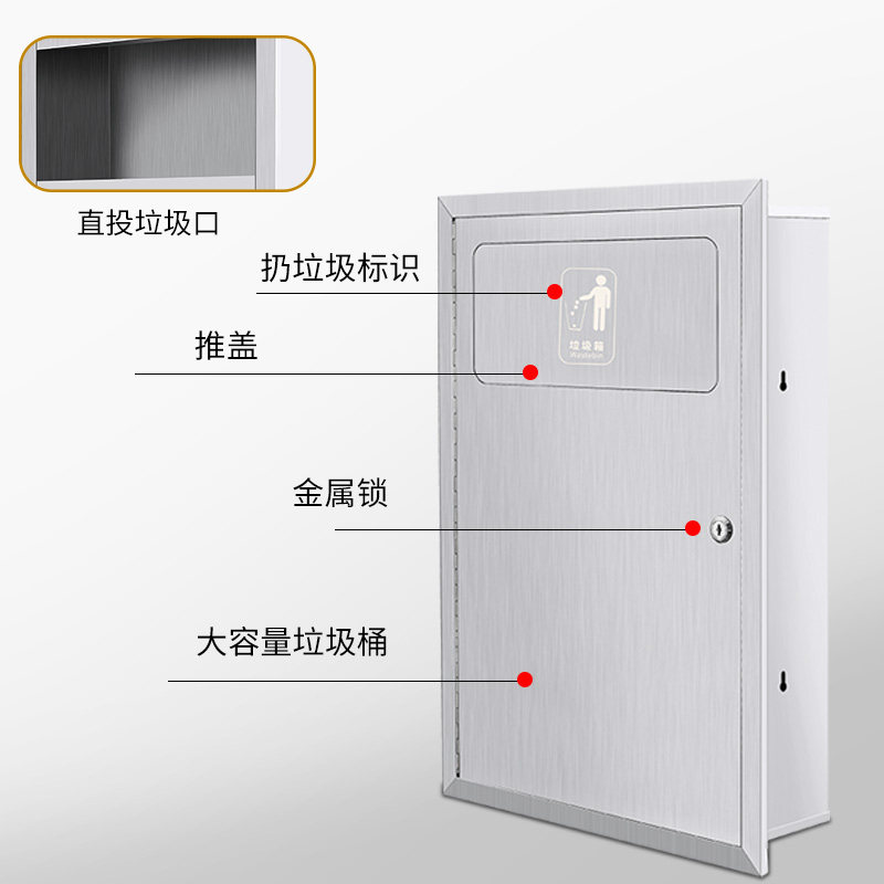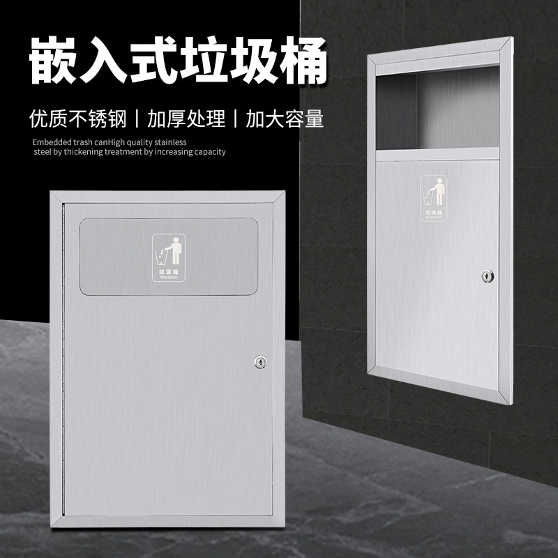 Bathroom Dark Loading Wall-Type Trash Can 304 stainless steel recessed trash can fit in the trash cans of the wall-Taobao