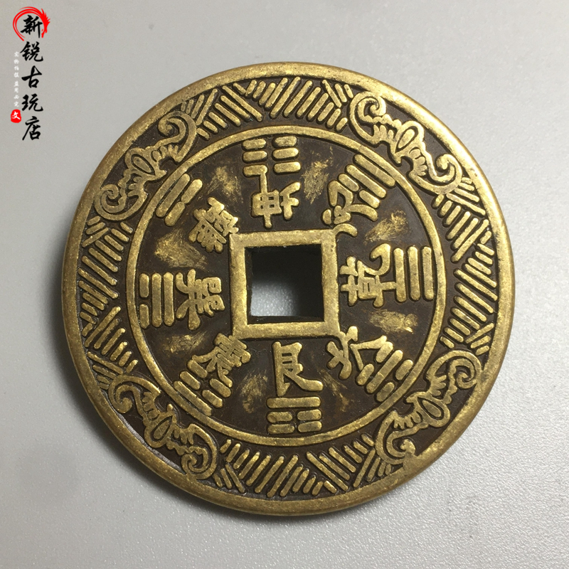 Ancient coin copper money to get tired of money pure copper retro-ancient Chuanse bag oars 4 3cm zodiac ghost spending money on back eight divination