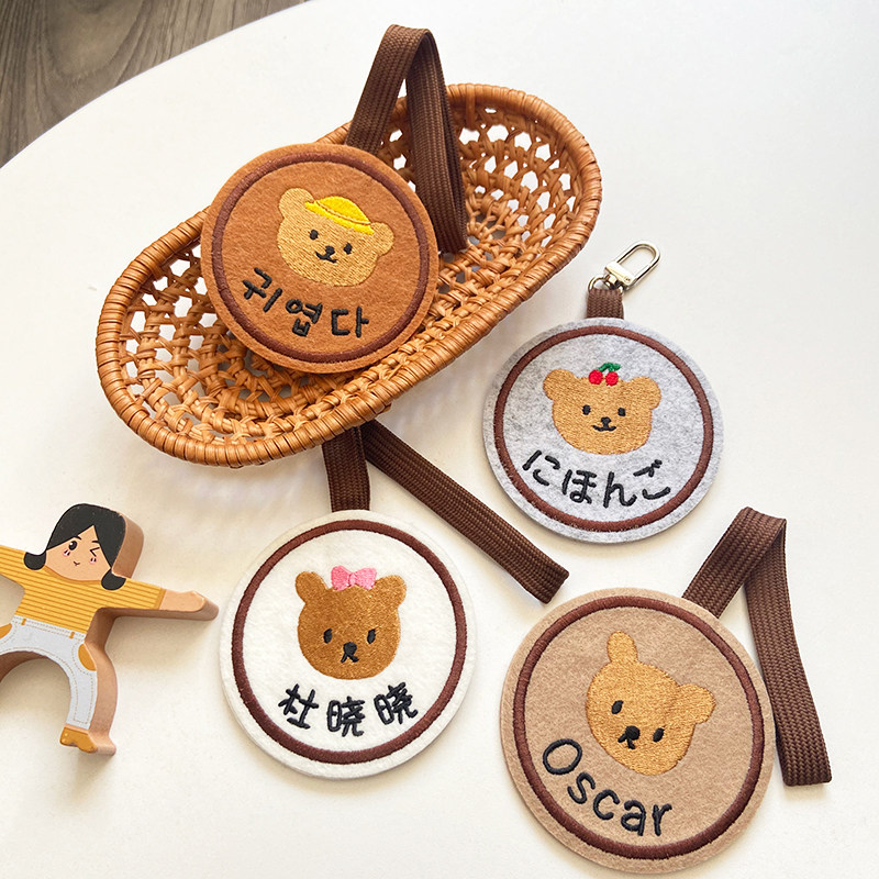 Children's name pendant can be customized teddy bear cartoon embroidery key chain kindergarten school bag anti-lost name tag