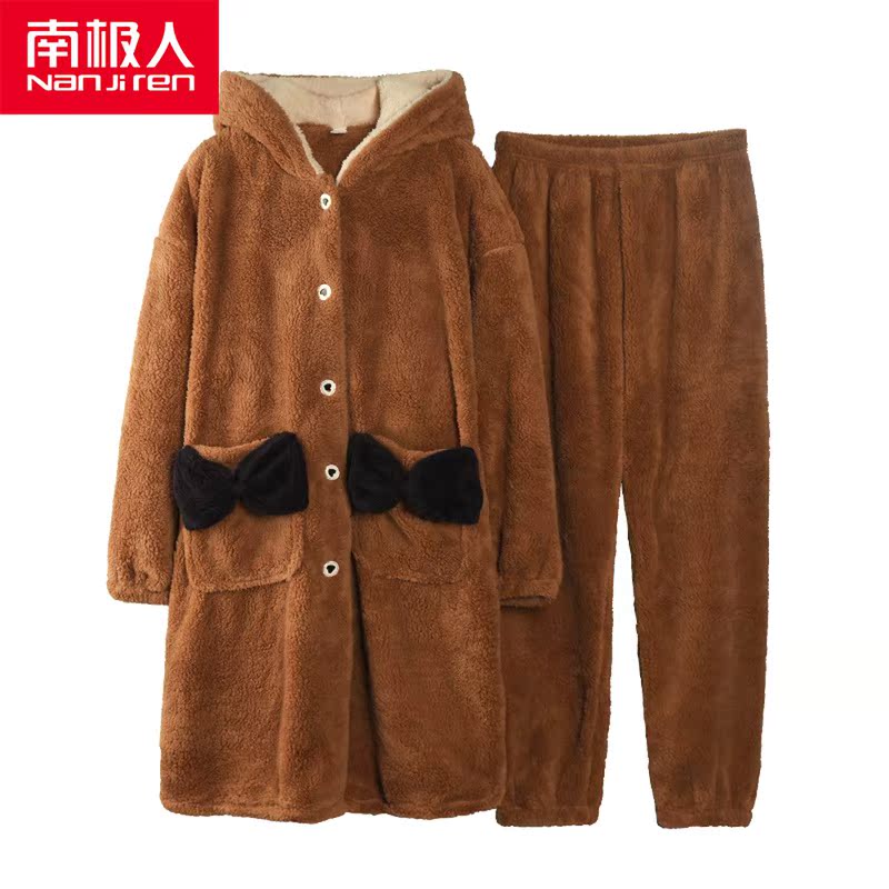 Sleepwear Woman Autumn Winter Coral Suede Thickened gush dress Long version Sleeping robe flannel Home Residence Suits 2021 New Winter
