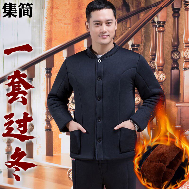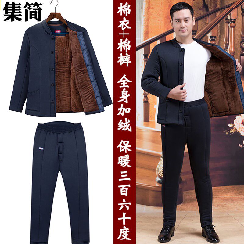 Middle-aged cotton clothes Daddy winter clothes plus thicker old cotton pants set to keep warm wearing grandpa cotton clothes