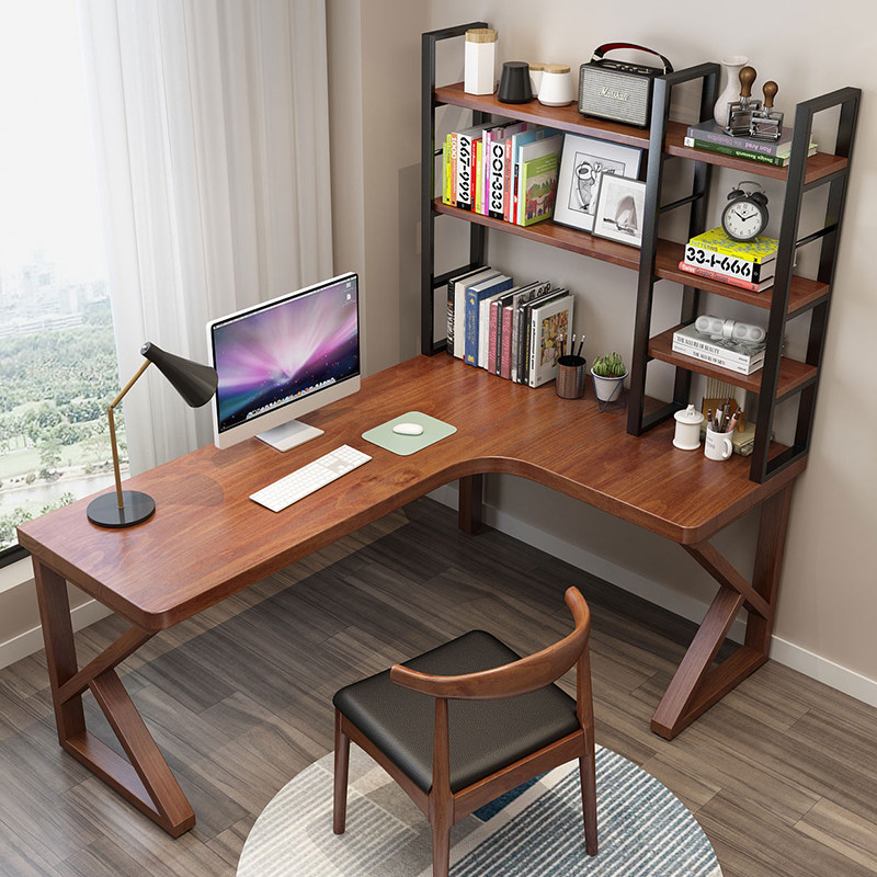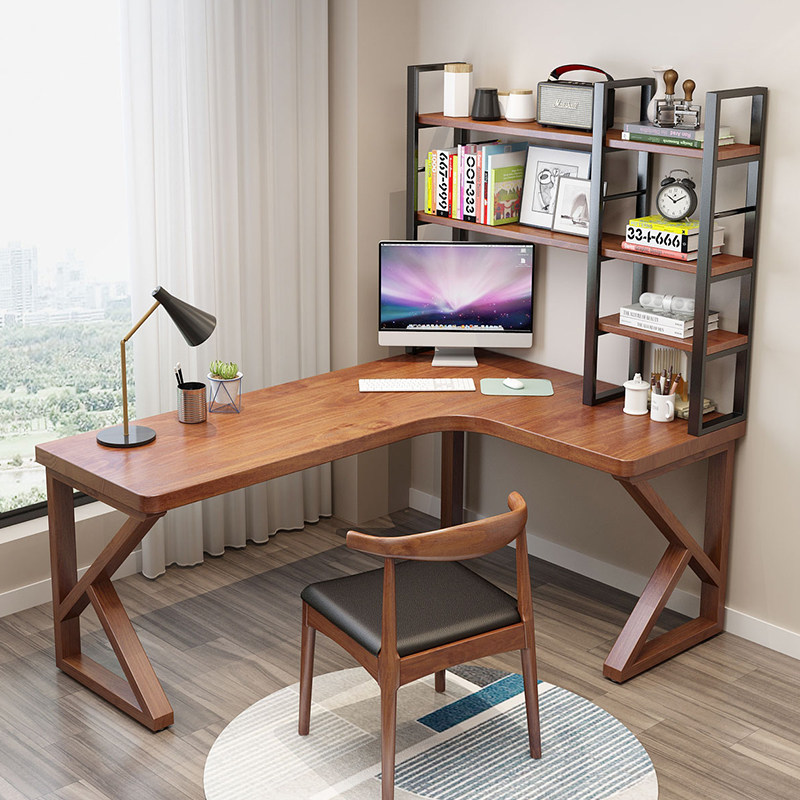 All solid wood corner desk bookshelf L-shaped computer desktop table corner bedroom small apartment study home desk