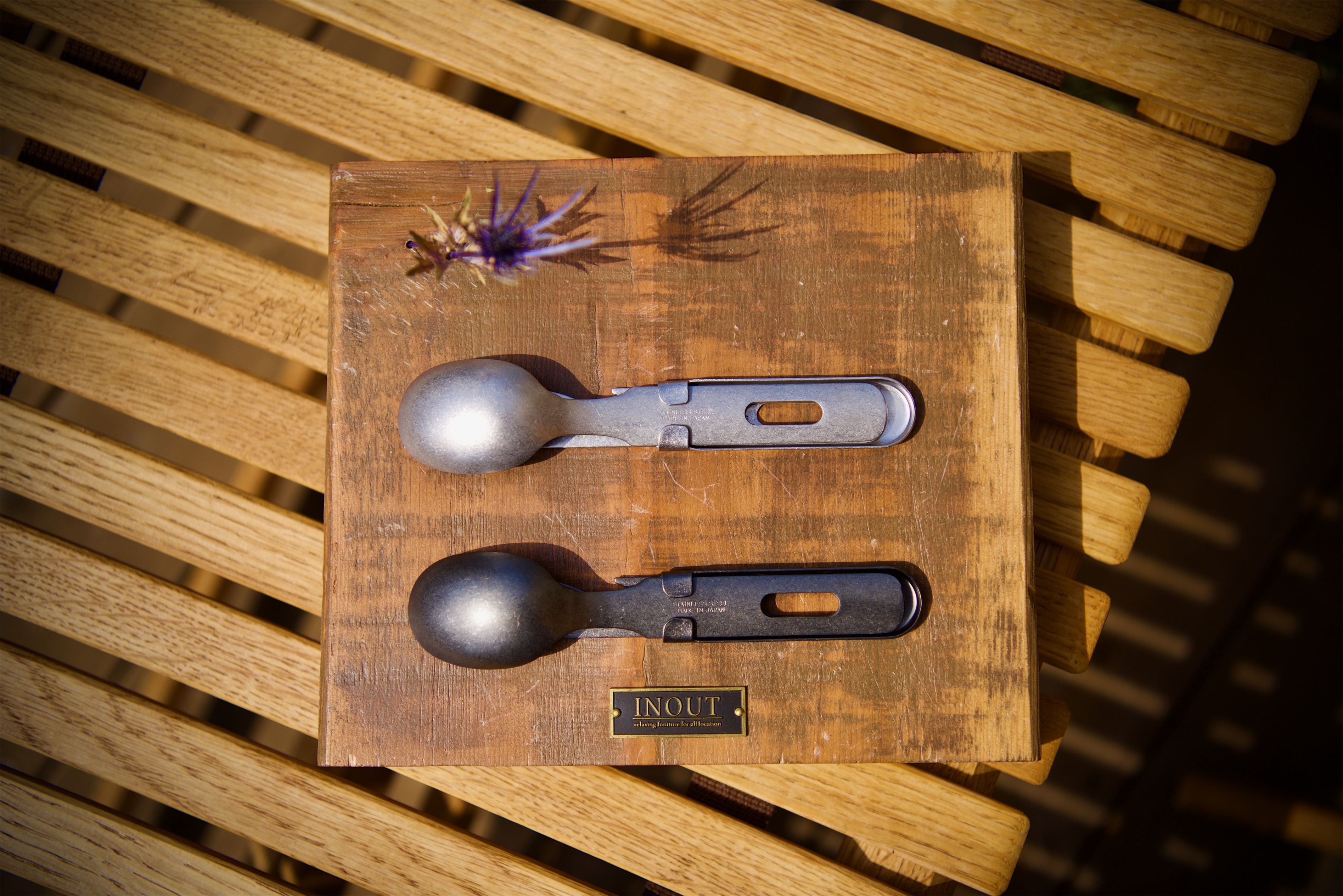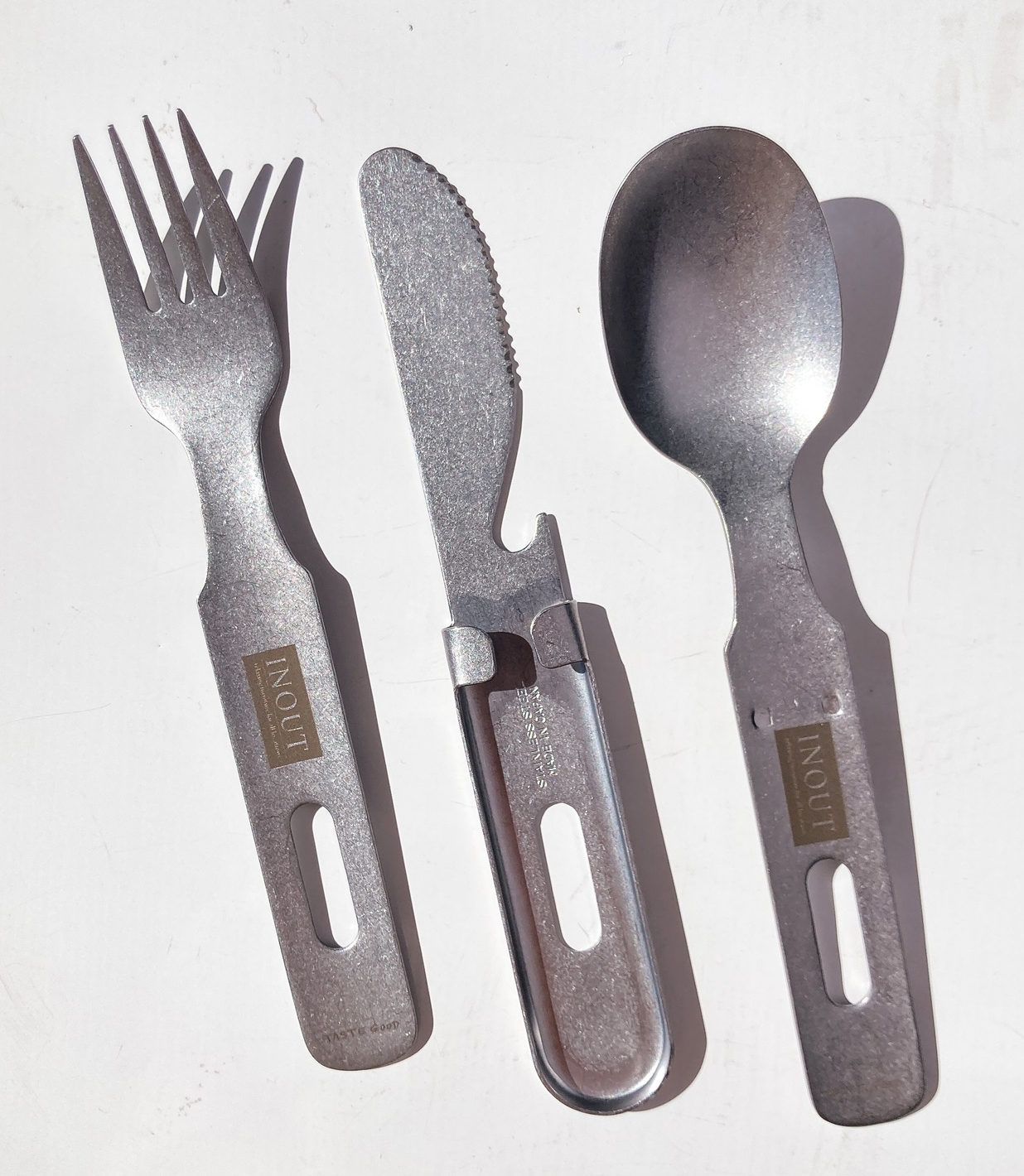 INOUT Japanese original stainless steel texture retro outdoor camping picnic tableware portable multi-functional knife and fork spoon