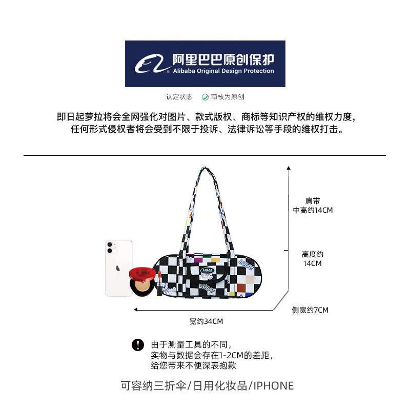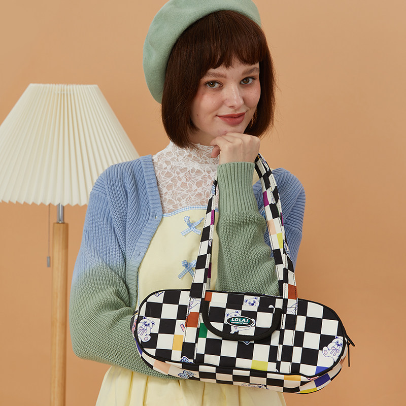 LOLA DESIGN Chessboard Lattice Single Shoulder Axillary Bains of wind Law Sticks Bag for small crowdsourced Academy