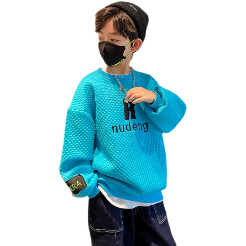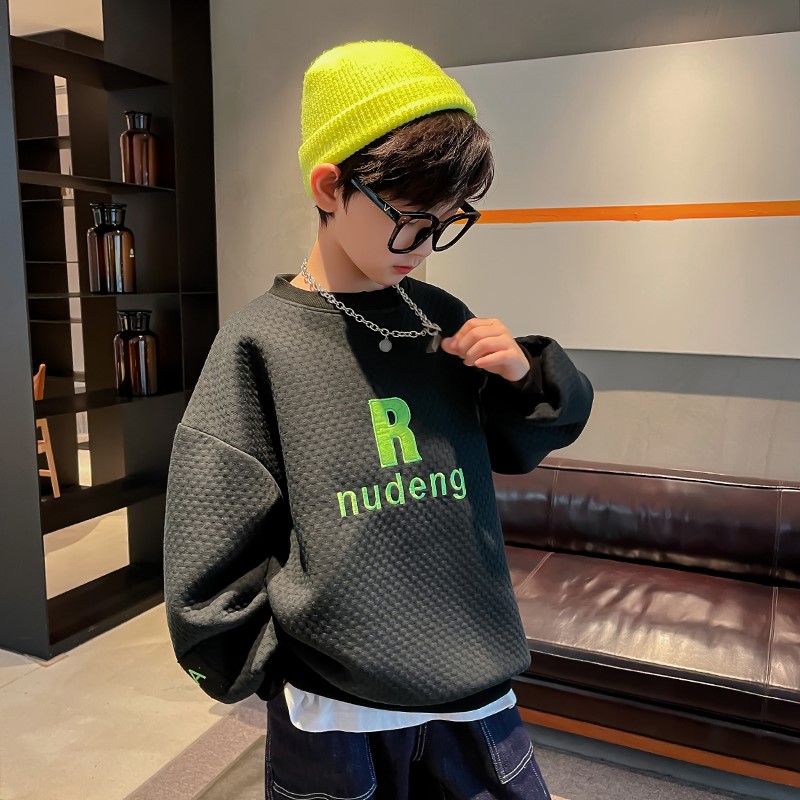 Ocnltiy boy's fried street sweater spring and autumn plus velvet 2022 new western style big boy thickened one-piece velvet top
